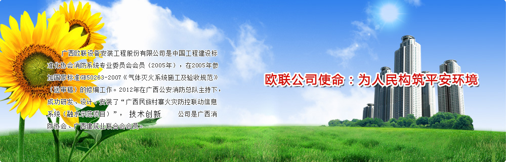 廣西歐聯(lián)設備安裝工程股份有限公司,成立于2002年12月,創(chuàng )立至今,公司始終專(zhuān)注于設備安裝、消防行業(yè)和設施設備的研發(fā)、設計、承包施工、消防檢測、維護保養、建筑(物業(yè))設施設備安全運營(yíng)服務(wù)物聯(lián)中心。公司總部位于南寧市國家高新開(kāi)發(fā)區東盟企業(yè)總部港,在總部港擁有自有產(chǎn)權的綜合辦公樓一幢,并在南寧市東方明珠花園12樓設立銷(xiāo)售總部。 2017年12月,公司在新三板成功掛牌,股票簡(jiǎn)稱(chēng):歐 ......